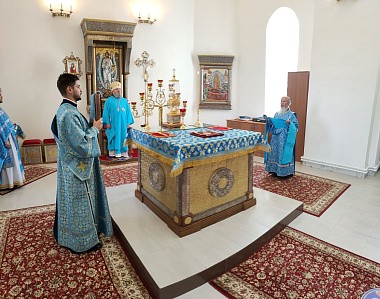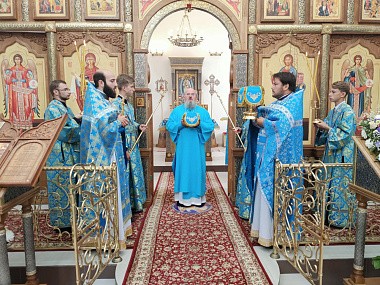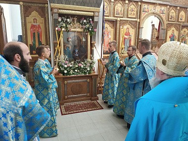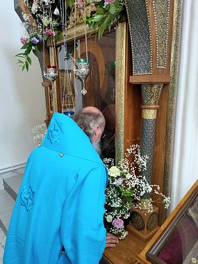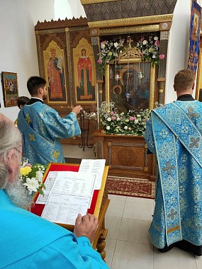 По отпусте Литургии священнослужители совершили молебен с акафистом пред иконой Царицы Небесной «Троеручица».