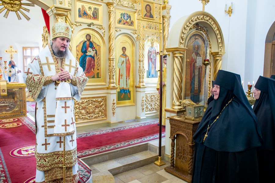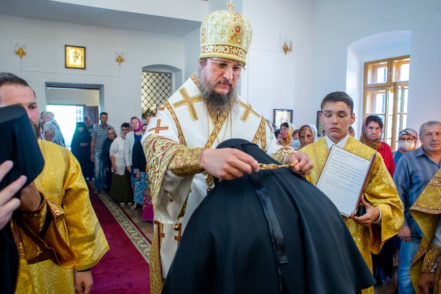Во время Литургии епископ Пахомий совершил над настоятельницей обители монахиней Виринеей (Букатовой) чин поставления в игумении. Решением Священного Синода (журнал №53 от 17 июня 2021 г.) монахиня Виринея (Букатова) назначена игуменией Свято-Никольского женского монастыря поселка Монастырский Пугачевского района Саратовской области.