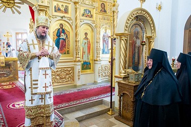 4 июля 2021 года, в Неделю 2-ю по Пятидесятнице, Всех святых, в земле Русской просиявших, епископ Покровский и Николаевский Пахомий совершил Божественную литургию в Свято-Никольском храме Свято-Никольского женского монастыря поселка Монастырский Саратовской области.