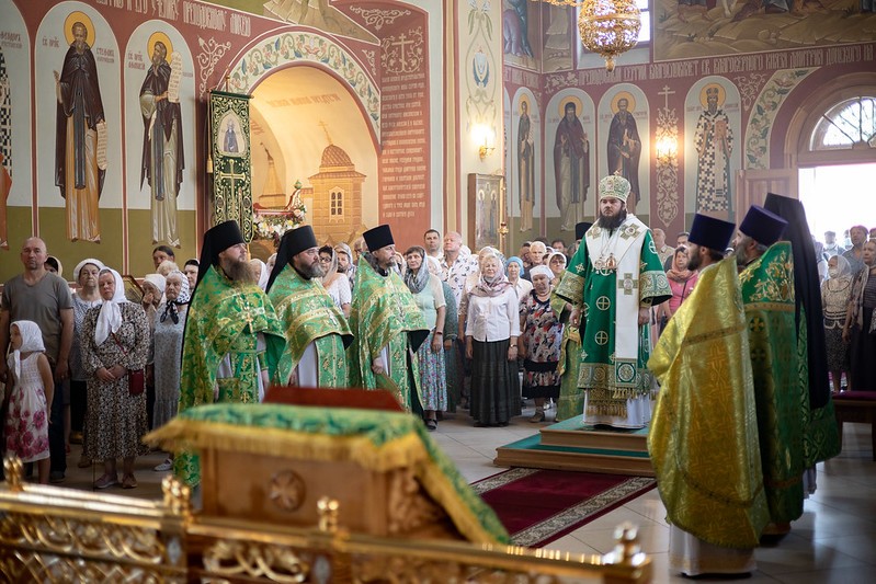 После праздничной трапезы епископ Фома в сопровождении игумена Алексия познакомился с историей обители, ее святынями и храмами.