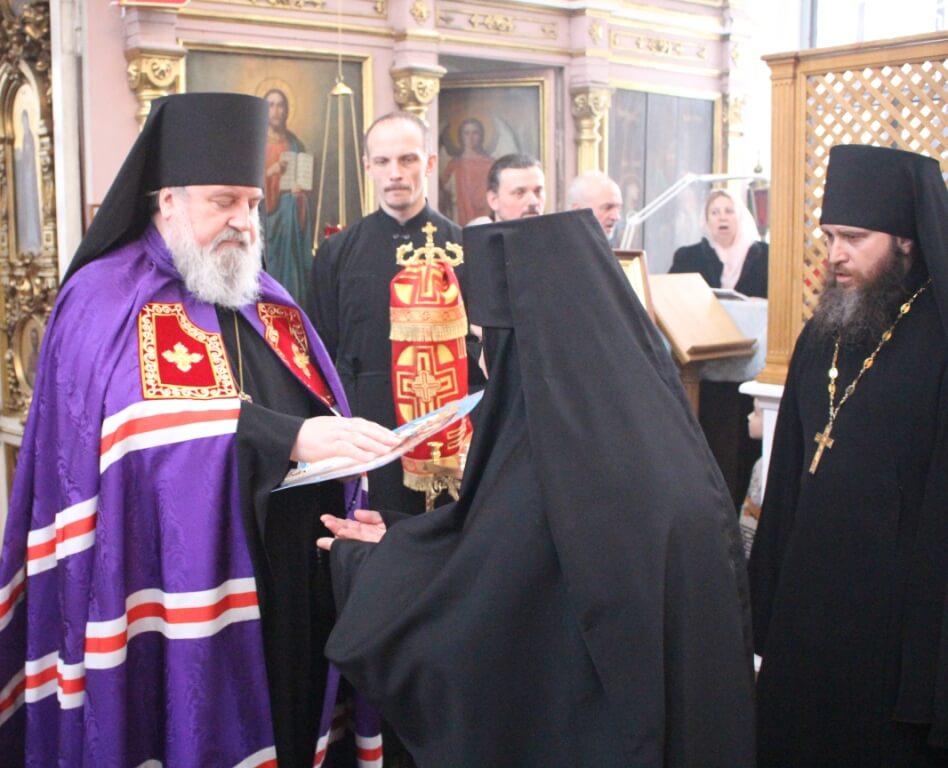 В завершение владыка Сергий обратился к молящимся с архипастырским словом и поздравил настоятеля, духовенство и всех присутствовавших в храме с великим освящением престола, а также наградил архиерейской грамотой всех, кто принимает активное участие в жизни прихода.