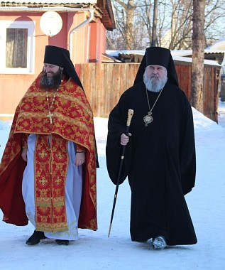 Его Преосвященству сослужили: секретарь Вяземской епархии протоиерей Валерий Калинин; настоятель Свято-Владимирского мужского монастыря на истоке Днепра игумен Амвросий (Федукович); настоятель храма в честь Казанской иконы Божией Матери г. Гагарина протоиерей Владимир Титов; клирик Благовещенского собора г. Гагарина иерей Роман Ступа; клирик Тихвинского Смоленского подворья Свято-Владимирского монастыря иеромонах Аркадий (Чугунов); клирик Вознесенского подворья Свято-Владимирского мужского монстыря иеромонах Сампсон (Горбатенко).