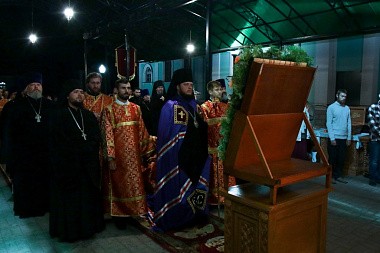 После Евангельского чтения за богослужением было совершено помазание верующих, прибывших разделить молитву с архипастырем и прославить святых Царственных страстотерпцев. Во время помазания молящимся были подарены иконы святых Царственных страстотерпцев.