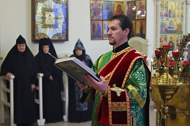 Проповедь по запричастном стихе произнес клирик монастыря иерей Василий Гафич.
