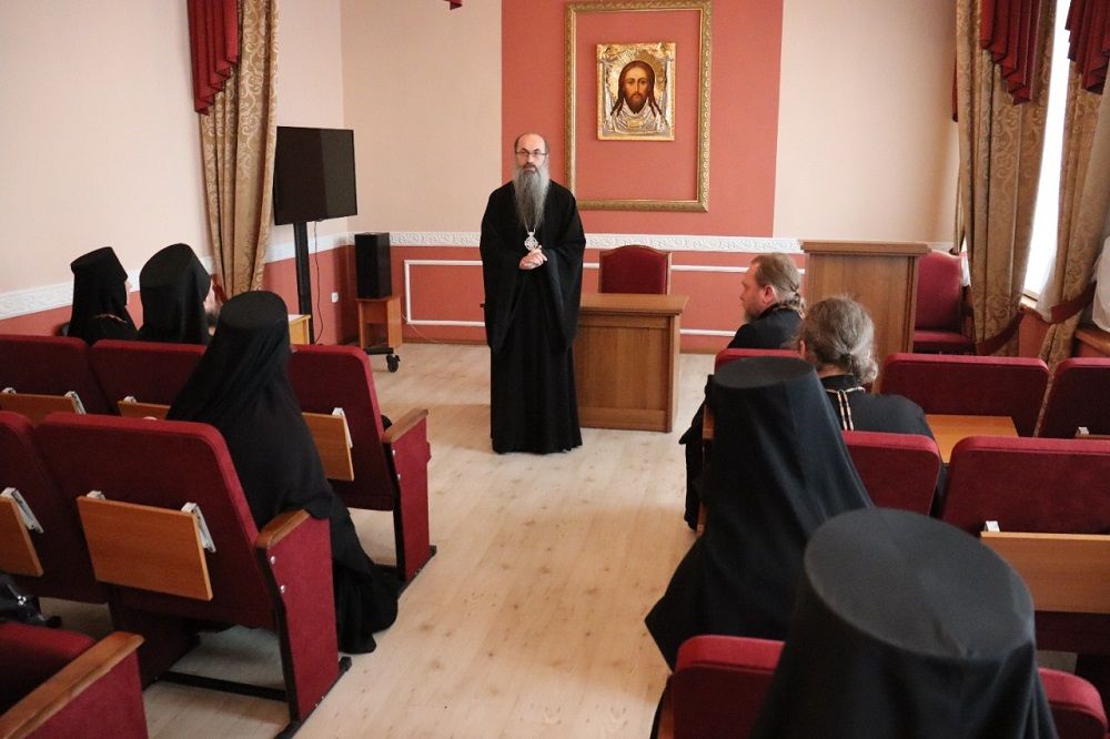 Владыка рассказал об организации на базе Духовного центра курсов базовой богословской подготовки монашествующих. Правящий архиерей епархии принял решение о проведении образовательной подготовки для насельников и насельниц обителей во исполнение решений Архиерейских соборов 2011, 2013 годов о богословском образовании монашествующих и решений Священного Синода о курсах для монашествующих.