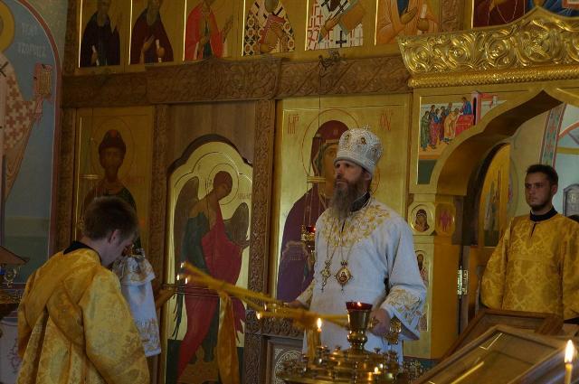 Его Преосвященству сослужили клирики епархии и братия монастыря.