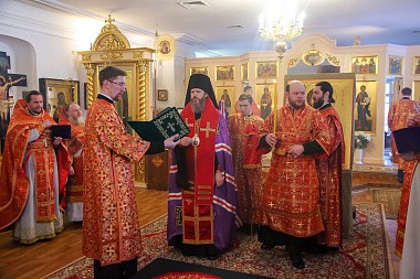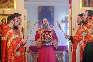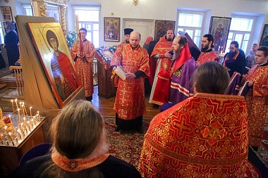 В домовой церкви в честь иконы Божией Матери «Всех скорбящих Радость» состоялась праздничная Божественная литургия, которую возглавил епископ Выксунский и Павловский Варнава в сослужении клириков Выксунской епархии.