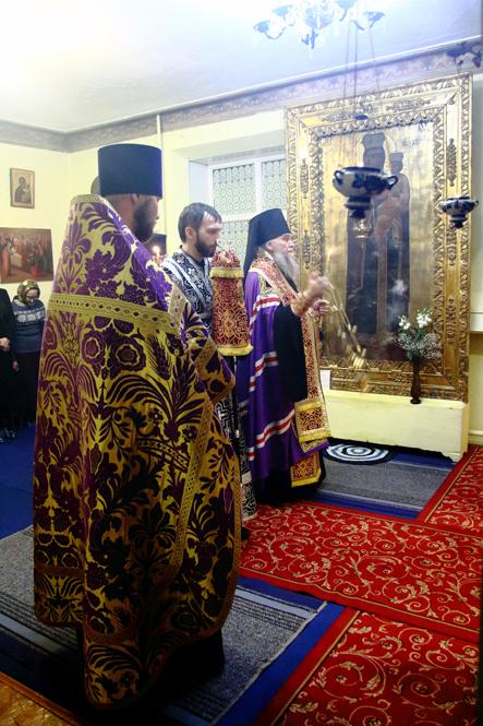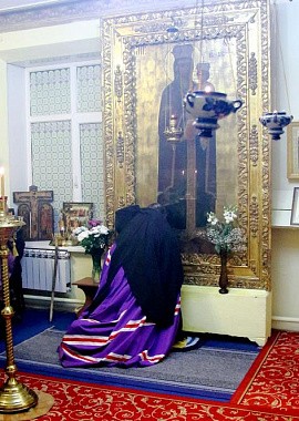 18 марта 2019 года епископ Рыбинский и Даниловский Вениамин совершил всенощное бдение накануне празднования в честь иконы Божией Матери «Благодатное Небо» в домовом храме святого праведного Иоанна Кронштадтского архиерейского подворья Вауловский скит.