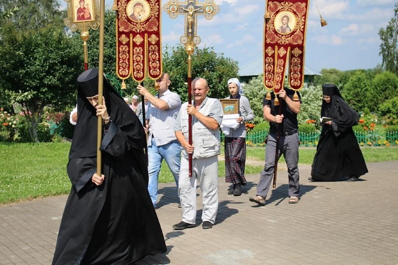 По случаю престольного праздника духовенство во главе с правящим архиереем совершили крестный ход и молебен с водосвятием.