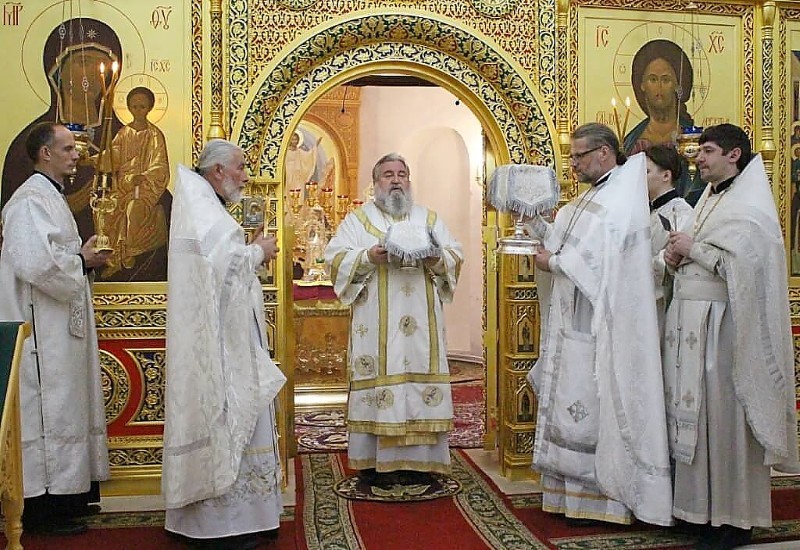 На сугубой ектении прозвучали прошения о единстве Православной Церкви и сохранении Церкви от разделений и расколов, а также молитвы, возносимые во время распространения вредоносного поветрия.