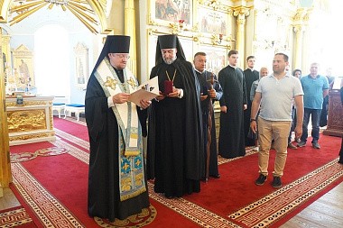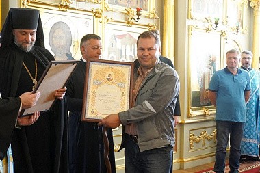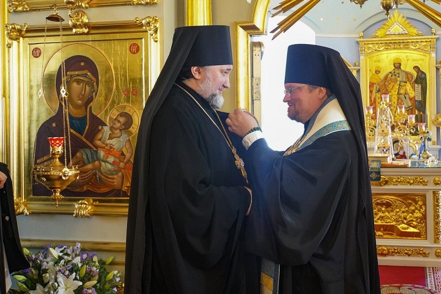 Во внимание к усердным трудам по возрождению Коневского Рождество-Богородичного мужского монастыря епископ Игнатий вручил архиерейские награды ряду сотрудников ПАО «Роснефть».