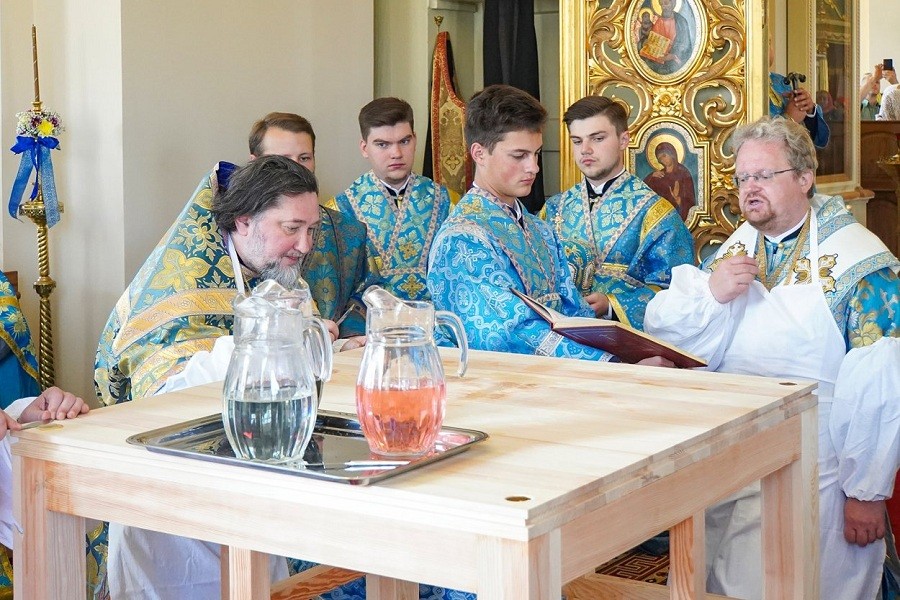 Его Преосвященству сослужили епископ Рославльский и Десногорский Мелетий, наместник Коневского монастыря архимандрит Александр (Арва), братия обители, клирики Санкт-Петербургской митрополии.