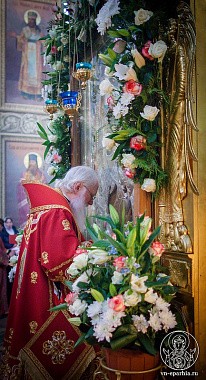 По окончании Литургии был совершен крестный ход и славление перед Иверской иконой Божией Матери.