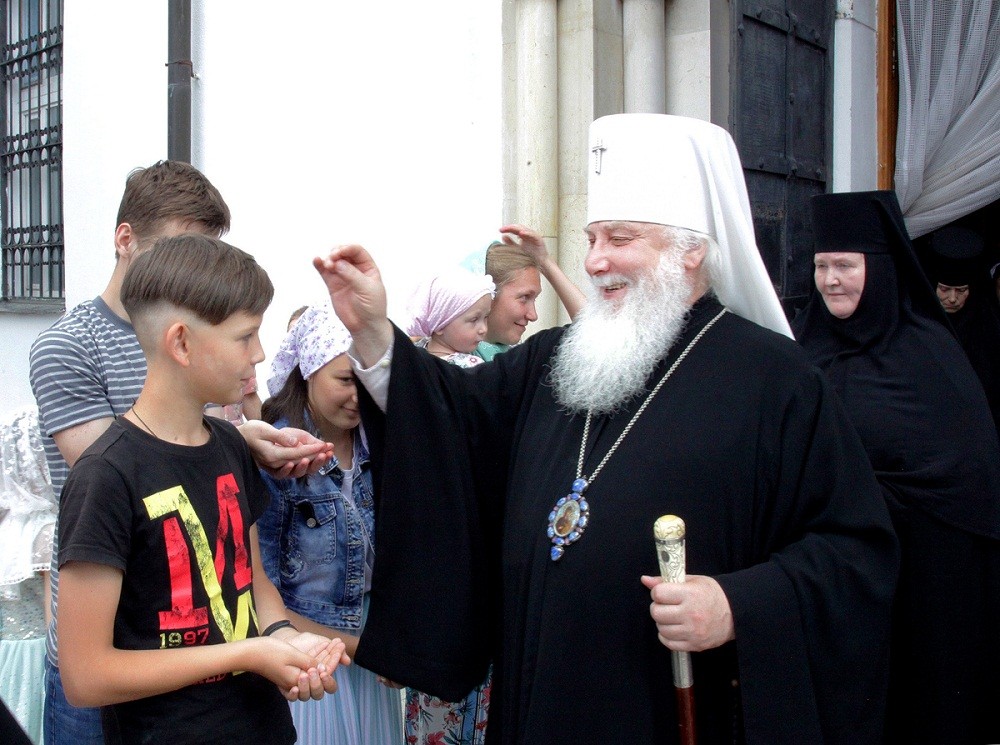 По окончании богослужения митрополит Арсений приветствовал сослужащее духовенство, матушек игумений, сестер и паломников обители: