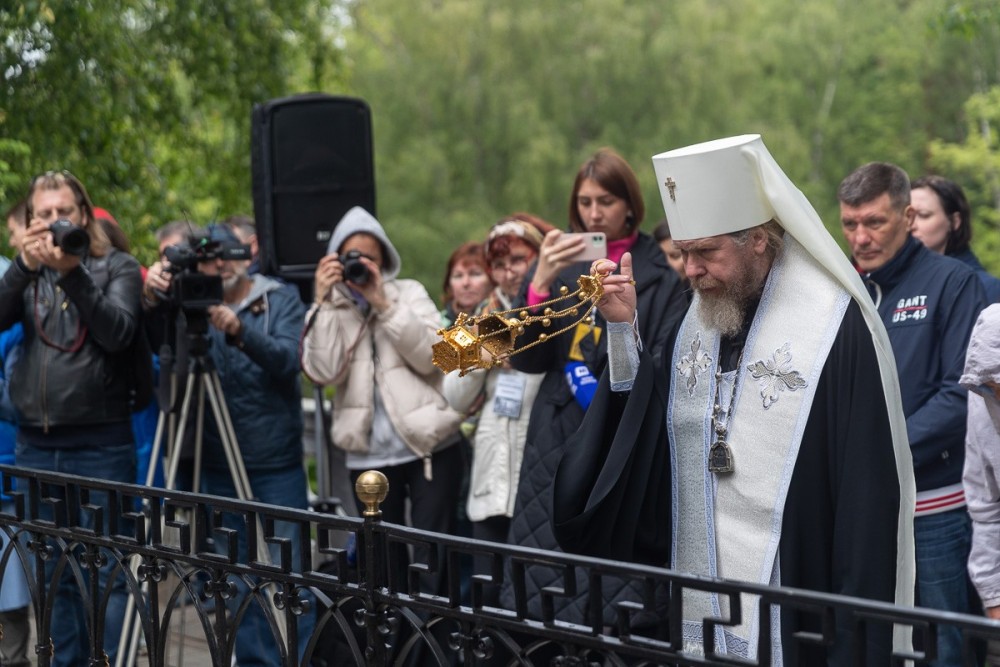 Перед началом церемонии открытия председатель Патриаршего совета по культуре митрополит Псковский и Порховский Тихон совершил литию на могиле поэта в Святогорском Успенском монастыре.