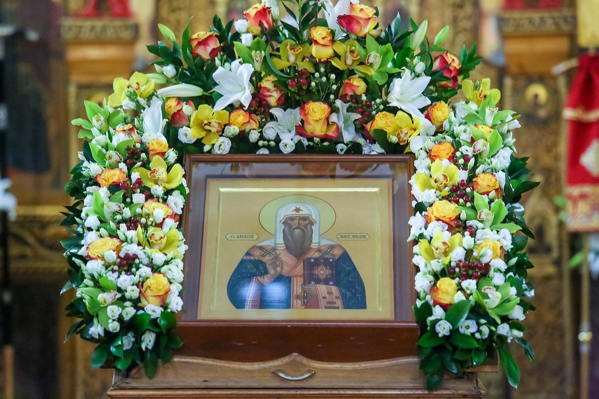 Перед своей блаженной кончиной в 1378 году митрополит Алексий, святитель Московский, завещал положить его тело в Чудовом монастыре в Кремле и указал место погребения за алтарем храма, не желая, по смирению своему, быть похороненным в храме. Но святой благоверный великий князь Димитрий Донской (1363‒1389), глубоко почитавший святителя, повелел положить тело митрополита Алексия в церкви, близ алтаря.