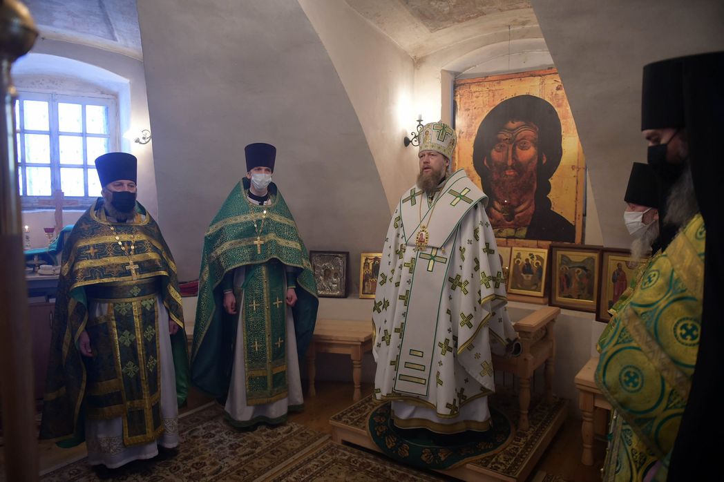 Его Высокопреосвященству сослужили: благочинный Тотемского округа иерей Серафим Розин,секретарь Великоустюжской епархии иерей Димитрий Рыжков, настоятель Архиерейского подворья «Спасо-Суморин монастырь» иеромонах Феодосий (Писарев), настоятель Свято-Троицкого Павло-Обнорского монастыря игумен Игнатий (Молчанов), настоятель Богоявленского храма села Городищна Нюксенского района иерей Александр Чудинов. Диаконский чин возглавил протодиакон кафедрального Воскресенского собора города Вологды Сергий Белоусов.