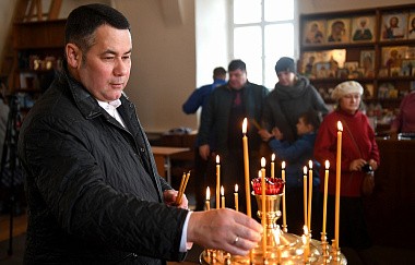 Традиционно в пасхальную седмицу в храмах любой желающий может позвонить в колокола. Этой традиции вместе со своей семьей последовал губернатор Игорь Руденя, который поднялся на звонницу в Оршином и Свято-Екатерининском монастырях.