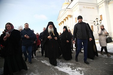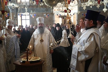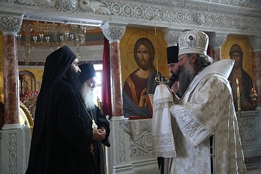 В этот день вместе с владыкой митрополитом святую обитель посетил архимандрит Ефрем, игумен Ватопедской обители на Святой Горе Афон в Греции.