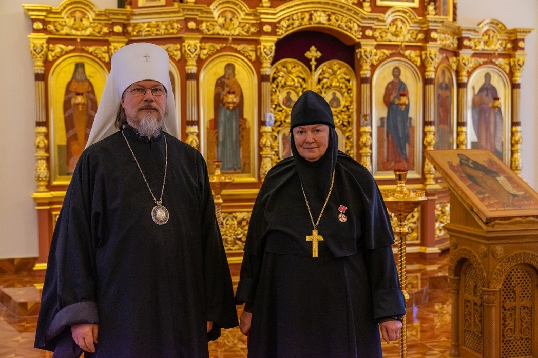 Высокопреосвященнейший владыка поздравил матушку с наградой, пожелал ей особой милости Божией и многих лет жизни.
