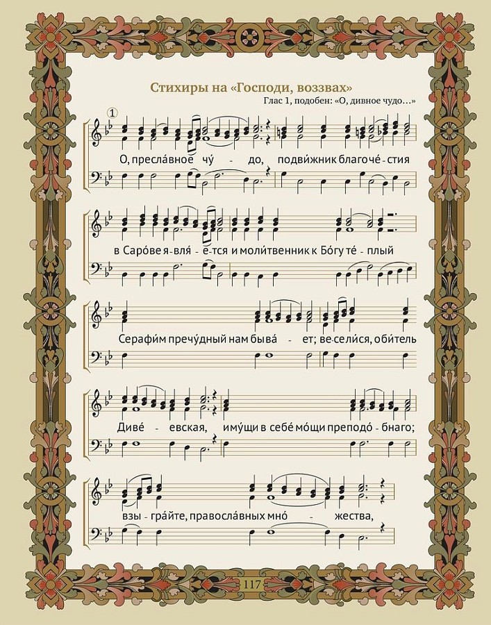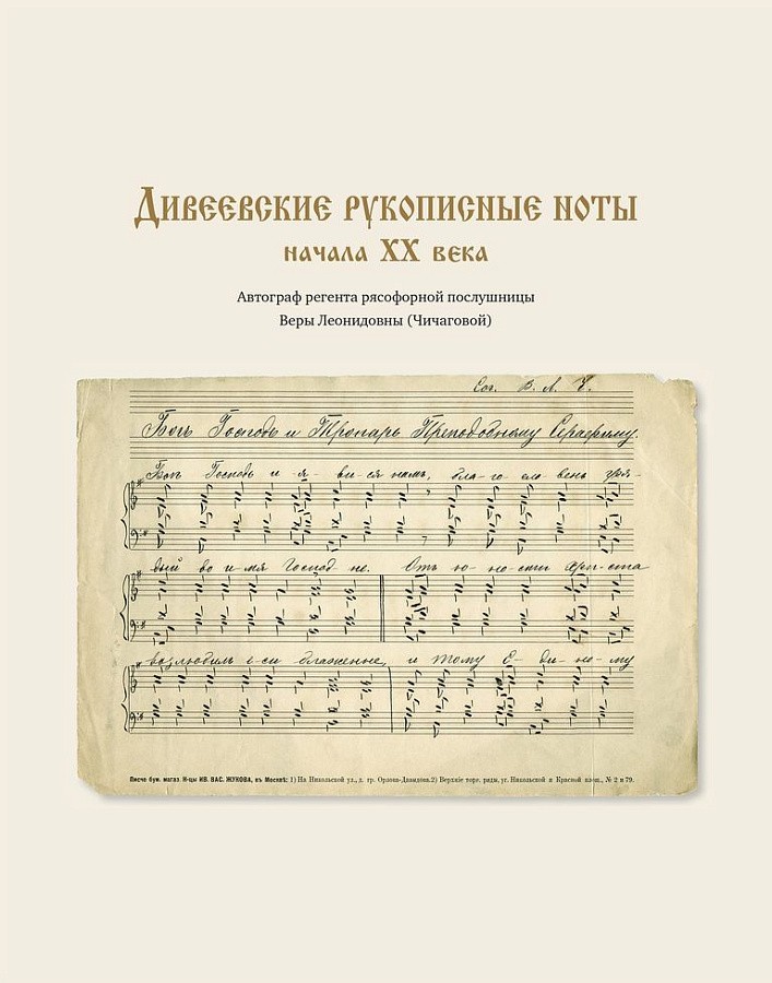 Кроме того, в книге опубликованы дивеевские рукописные ноты начала ХХ века, написанные регентом монастыря рясофорной послушницей Верой (Чичаговой), дочерью священномученика Серафима (Чичагова).