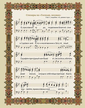 В конце книги содержится нотное приложение, включающее в себя избранные песнопения праздничного богослужения преподобному Серафиму из репертуара хора Серафимо-Дивеевского монастыря: стихиры на «Господи, воззвах», литии, стиховне и по 50-м псалме.