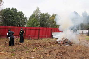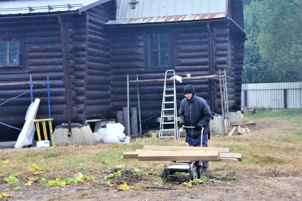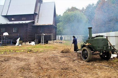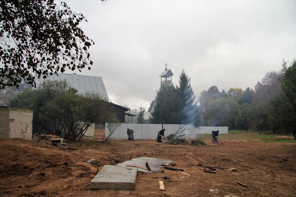 Однако самое главное – это открытие и начало систематической работы самого музейно-образовательного комплекса в Андреевском скиту близ Варшавского шоссе. Этим летом здесь шло строительство «оборонительных сооружений». Чтобы подготовить после строительных мероприятий территорию музейно-образовательного комплекса к юбилейным торжествам, сестры монастыря 16 сентября 2021 года выехали сюда с «трудовым десантом». Расчистка территория от строительного и природного мусора, покрасочные работы, нанесение разметки на плац для строевой подготовки и торжественных построений, благоустройство территории. При работах были найдены детали от военной техники – каток от танка, а также другие металлические фрагменты, напоминающие рычаги или части домкрата.