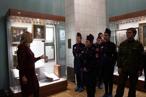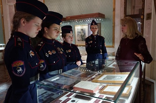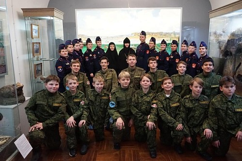 После молебна и праздничной трапезы казаки отправились на экскурсию в музей-усадьбу Золоторевых. Кадеты узнали много нового о Калуге, окунулись в атмосферу XVII-XIX веков, а также увидели помещения, в которых с XIX века останавливались все цари и императоры, приезжавшие в этот город.