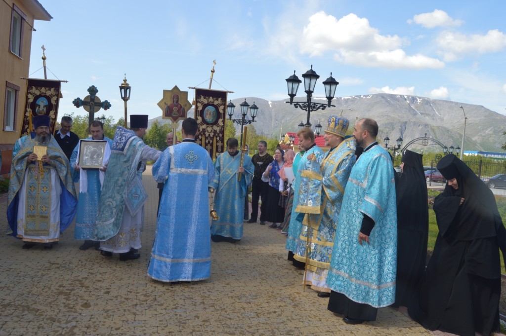 Праздничную литургию отслужил митрополит Мурманский и Мончегорский Митрофан. В проповеди, последовавшей за Литургией и крестным ходом, владыка подчеркнул значение заступничества Божией Матери для всех верующих и всей земли Русской, а также обратил внимание на особый путь монашествующих и роль монастырей как очагов, где живет правда Божия.
