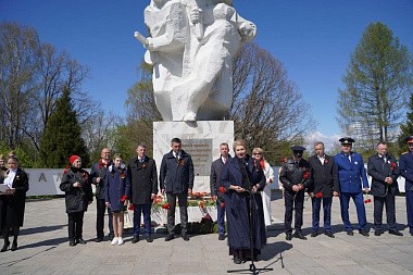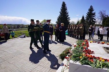 Хор «Отрада» исполнил песни «Седые головы» и «Кино идет, воюет взвод. Счастливый май». Девочки также приняли участие в возложении цветов к памятнику защитникам Ильинских рубежей и сфотографировались на память с участниками памятного церемониала.