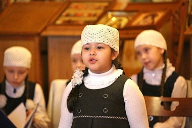 Юные христославы исполнили рождественские песнопения и колядки. После выступления ребята с родителями приложились к святыням обители и полюбовались украшенной к Рождеству Христову территорией монастыря.