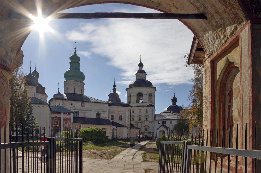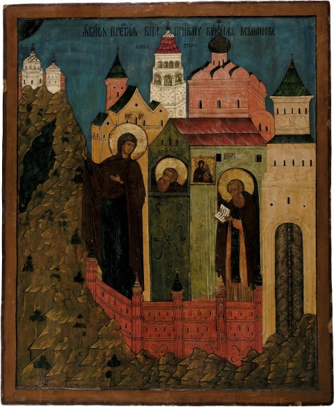 После того как Феодор стал архиепископом Ростовским, в 1388 году симоновским архимандритом становится преподобный Кирилл. Однако вскоре он оставляет свое настоятельство и затворяется в келии. Как сообщает житие преподобного, однажды ночью за акафистом он слышит голос Божией Матери: «Кирилл, выйди отсюда и иди на Белоозеро. Там я уготовала тебе место, где можно спастись». В Белозерье святой Кирилл отправился вместе с другим симоновским монахом Ферапонтом. На берегу Сиверского озера на указанном Богородицей месте преподобный Кирилл ископал свою пещеру и продолжил молитвенный подвиг. Так в 1397 году было положено начало монастыря Пречистой Богородицы, известного далее как Кирилло-Белозерский. Ферапонт вскоре удалился на 15 верст от Кириллова, основав свой монастырь. В одиночестве Кирилл оставался недолго. Вскоре к нему присоединились двое из местных и три монаха из Симонова. Устав Кириллова монастыря был очень строг. К моменту преставления прп. Кирилла число братии составило 53 человека. Обитель рано стала одним из важнейших книжных центров России. Многие из сохранившихся храмов были отстроены в камне на исходе правления Василия III. В 1528 году этот правитель приехал в Кирилловский монастырь с княгиней Еленой Глинской молиться о даровании наследника. Последовавшее за этим рождение сына – будущего царя Ивана Грозного – в глазах современников связывалось с заступничеством преподобного Кирилла Белозерского. Иван Васильевич на протяжении всей своей жизни питал к Кириллову монастырю особое пристрастие, считая себя обязанным ему своим рождением. Монастырь богател, разрастался и стал крупнейшим средоточием каменных построек на севере Русского государства и крупнейшим церковным землевладельцем. Никон, Патриарх Московский, был сослан сюда в 1676 году и провел здесь последние 5 лет своей жизни. В 1764 указом Екатерины II обитель была лишена крестьян и угодий. Через 12 лет из монастырской слободы был образован город Кириллов. В сентябре 1918 года большевиками был расстрелян настоятель монастыря Варсонофий (Лебедев), епископ Кирилловский. После упразднения монастыря ризница была подвергнута разорению; наиболее ценные иконы и другие произведения искусства были вывезены в музеи Москвы и Ленинграда. В 1924 году в стенах монастыря был открыт музей-заповедник. В 1997 году, в год празднования 600-летия монастыря, часть монастырской территории была передана Вологодскому епархиальному управлению. В церкви Кирилла под спудом пребывают мощи прп. Кирилла Белозерского – главная церковная святыня обители. В настоящее время монастырь и музей соседствуют