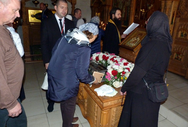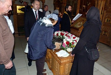 В течение дня перед святыней в храме святой обители совершались молебны с чтением акафиста святителю Спиридону Тримифунтскому.