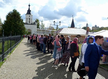 С утра в стенах святой обители собрались жители этого древнего города, чтобы приложиться к известной общехристианской реликвии. Для города Старицы принесение столь значимой святыни – уникальное событие.