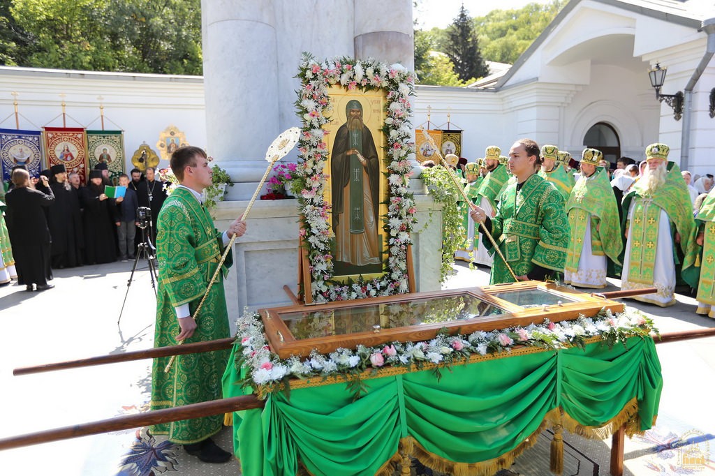 В день праздника после ранней Божественной литургии во дворе обители у фонтана митрополит Арсений совершил водосвятный молебен преподобному Иоанну отшельнику. Затем наместник Лавры обратился к собравшимся со словом.