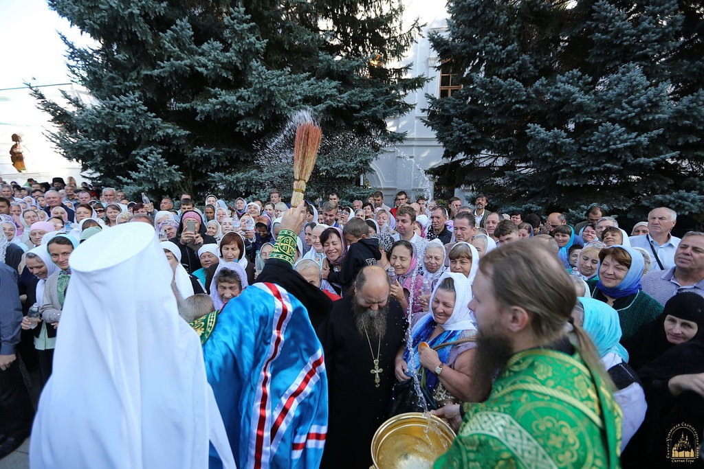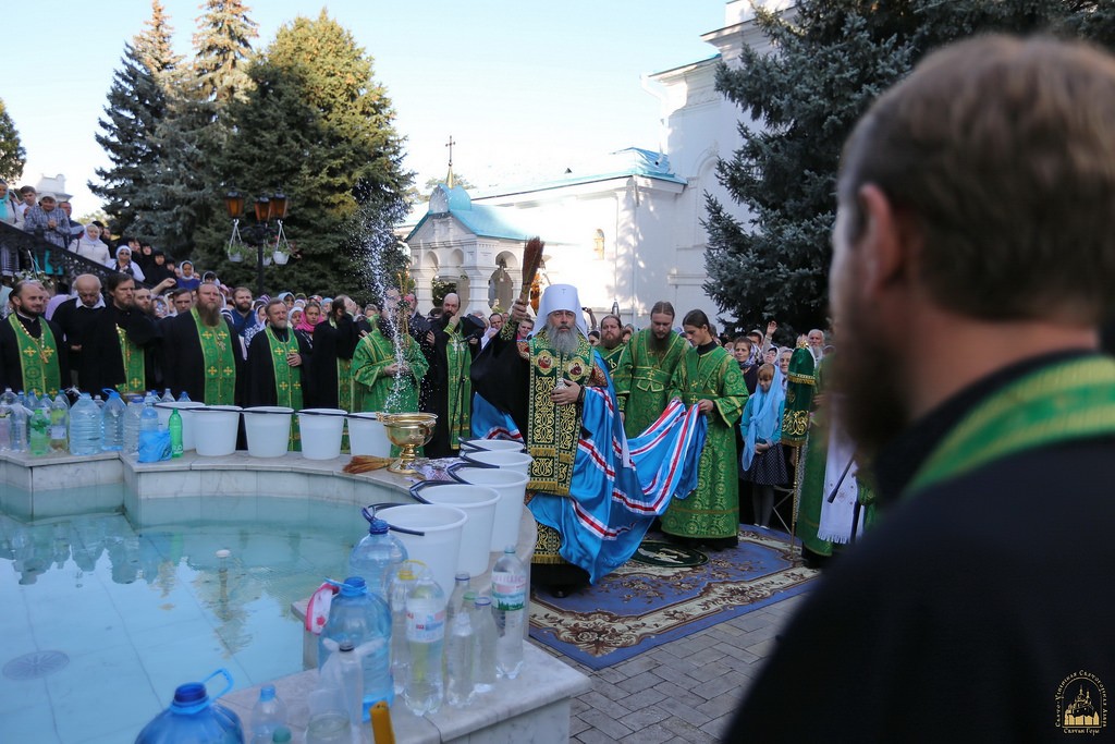 После молебна состоялась встреча митрополита Донецкого и Мариупольского Илариона, который возглавил праздничную Литургию. Священноархимандриту Лавры сослужили: митрополит Святогорский Арсений, митрополит Горловский и Славянский Митрофан, митрополит Изюмский и Купянский Елисей, архиепископ Макеевский Варнава, архиепископ Северодонецкий и Старобельский Никодим, архиепископ Бердянский и Приморский Ефрем, епископ Иннокентий (Шестопаль), епископ Александрийский и Светловодский Боголеп, епископ Добропольский Спиридон, а также лаврское духовенство, монахи и священники из разных епархий Украинской Православной Церкви. Всего в праздничной Литургии участвовали более 450 священников и 20 диаконов.