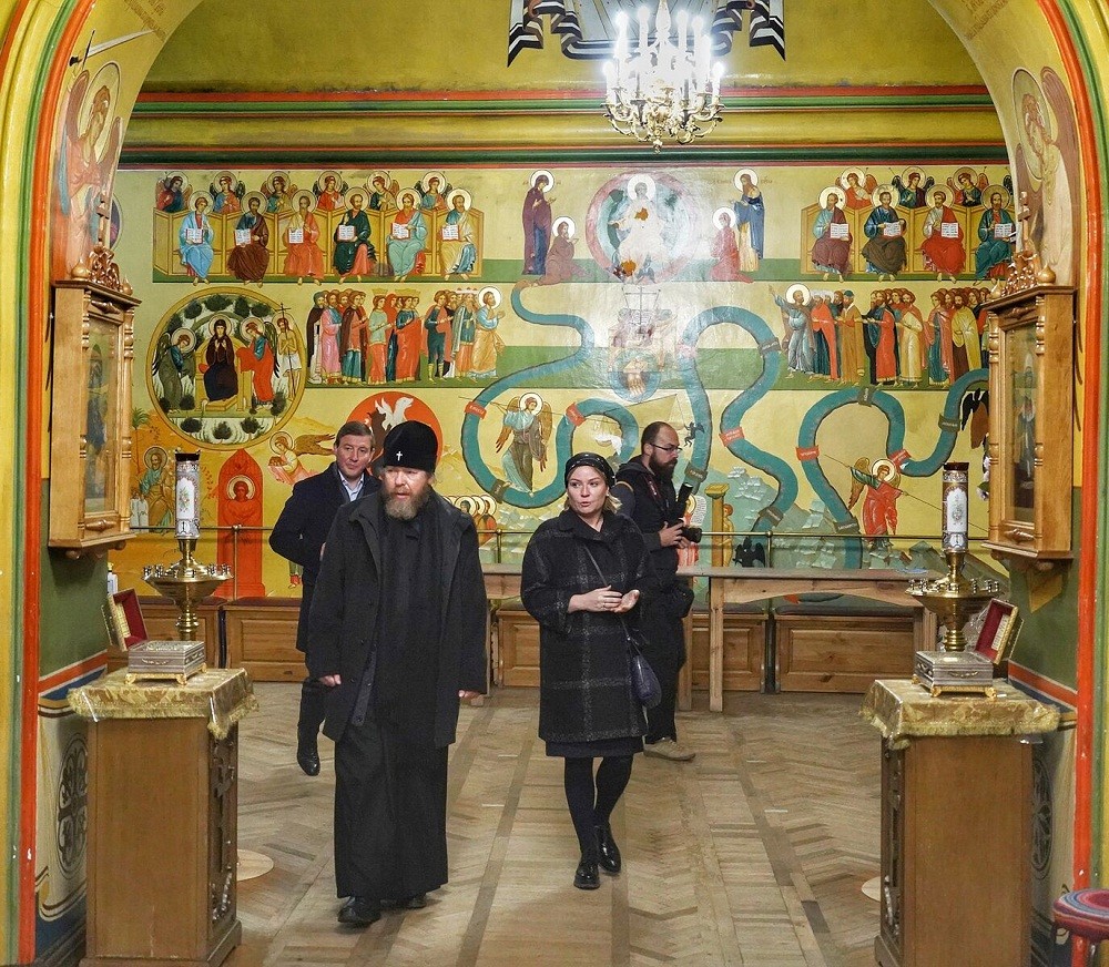 Министр культуры Российской Федерации О. Б. Любимова, находящаяся в Пскове с официальным визитом, и первый заместитель председателя Совета Федерации Федерального собрания Российской Федерации А. А. Турчак посетили Свято-Успенский Псково-Печерский монастырь.