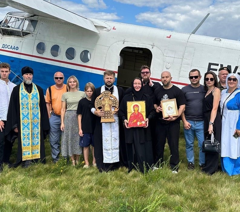 В самолете находились святыни Мироносицкой обители: крест с частицами мощей многих угодников Божиих, образ Пресвятой Богородицы «Казанская», икона равноапостольной Марии Магдалины, память которой совершалась в этот день, другие святыни.