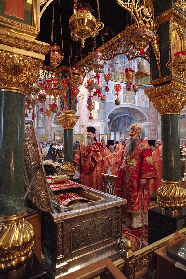 За богослужением вместе с многочисленными паломниками и прихожанами молилась настоятельница монастыря игумения Сергия (Конкова), сестры обители, руководитель педагогического направления Благотворительного фонда преподобного Серафима Саровского Ольга Бараева и участники открывшейся накануне в Дивееве педагогической конференции «Наследие преподобного Серафима Саровского и актуальные вопросы духовно-нравственного просвещения».