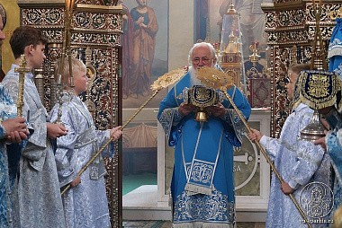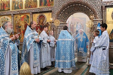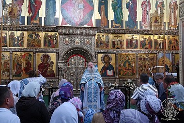 Его Высокопреосвященству сослужили наместник Иверского монастыря иеромонах Антоний (Битьмаев) и насельники монастыря иеромонахи Борис (Григорьев) и Пантелеимон (Шахтахтинский).
