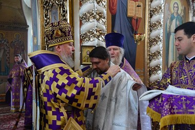 За Литургией Владыка рукоположил иеродиакона Кронида (Перченко) в сан иеромонаха. Новорукоположенный будет нести свое монашеское послушание в Белобережской Иоанно-Предтеченской мужской пустыни.