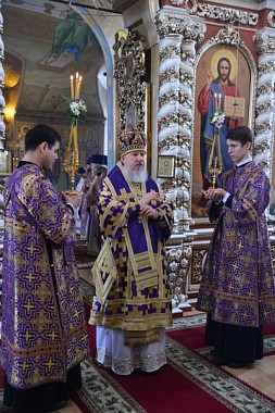 За богослужением Его Высокопреосвященству сослужили секретарь Брянской епархии протоиерей Павел Чикалин, благочинный монастырей Брянской епархии игумен Даниил (Цупиков), настоятель Богородицкой Площанской пустыни игумен Леонид (Лушкин), настоятель Белобережской Иоанно-Предтеченской пустыни игумен Глеб (Шматов), благочинный Жуковского церковного округа протоиерей Рустик Богатырев, благочинный Севского церковного округа иерей Константин Балин.