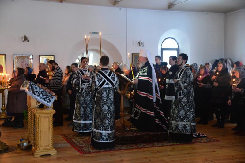 За аналоем, установленным в центре храма, владыка Александр прочел вторую часть Покаянного канона.