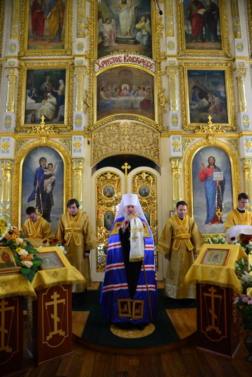 Затем митрополит Александр поздравил настоятельницу Петро-Павловского монастыря игумению Елену, духовенство и прихожан с торжеством.