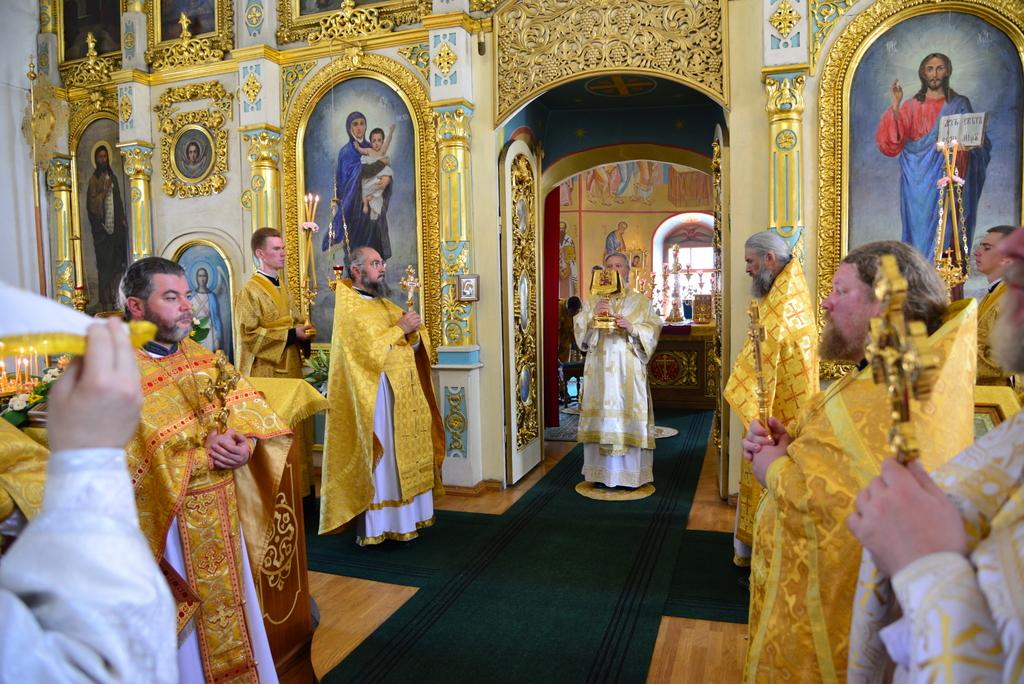 В Введенском храме обители Его Высокопреосвященству сослужили благочинный Брянского градского церковного округа протоиерей Сергий Рысин, благочинный монастырей Брянской епархии игумен Даниил (Цупиков), наместник Свенского Успенского монастыря игумен Алексий (Тюрин), настоятель Бело-Бережской Иоанно-Предтеченской пустыни игумен Глеб (Шматов), настоятель Богородицкой Площанской пустыни игумен Леонид (Лушкин), клирик Петро-Павловского монастыря иерей Александр Кузьменко.