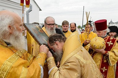 В завершение Высокопреосвященнейший владыка осенил молящихся чудотворным образом и окропил святой водой.