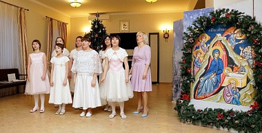 «По всему лицу Земли торжественно шествует праздник Христова Рождества! Пришел этот светлый день и в ваш прекрасный дом, где под благословенным покровом матушки Амвросии вы растете добрыми христианами, не оскудевающими в творческом желании творить добро и радовать близких своими прекрасными выступлениями и успехами в учебе, приносящей новые и новые знания, которые вы будете щедро дарить миру – во славу Божию и на радость людям».