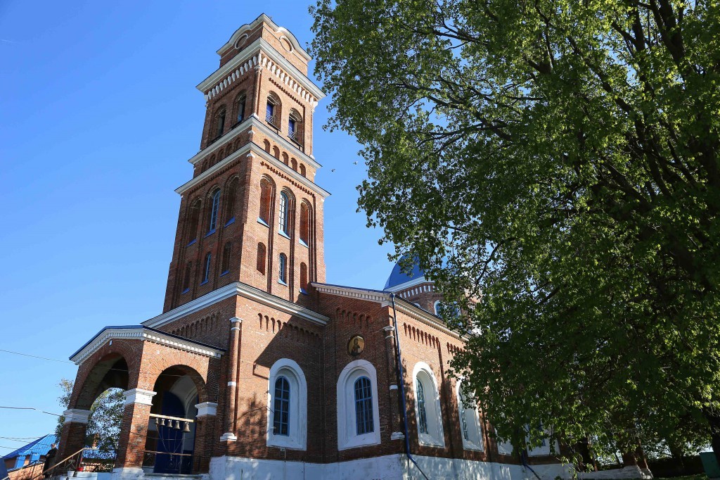 В 1855 г. началось строительство храма. За недостатком средств стройка длилась 15 лет. Храм строился под руководством статского советника архитектора-академика Дмитриева Алексея Михайловича по проекту русского архитектора Громова. Новую церковь освятили в 1870 г. Жители села не остались безучастными к событиям 5 февраля 1880 г., когда произошел взрыв в Зимнем дворце. В этот же год на свои средства они устроили в храме придельный алтарь во имя Вознесения Господня в память чудесного спасения семьи императора Александра II.