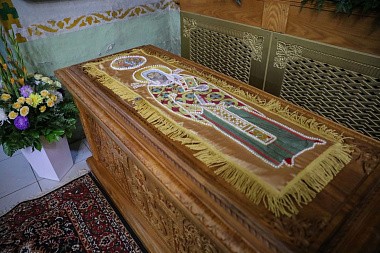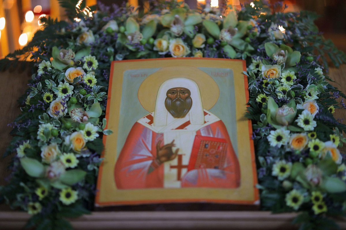 По окончании Литургии митрополит Алексий совершил славление у раки с частицей мощей святителя Пимена, архиепископа Новгородского, Веневского затворника. После чего обратился к предстоящим с проповедью о мире и любви о Христе.