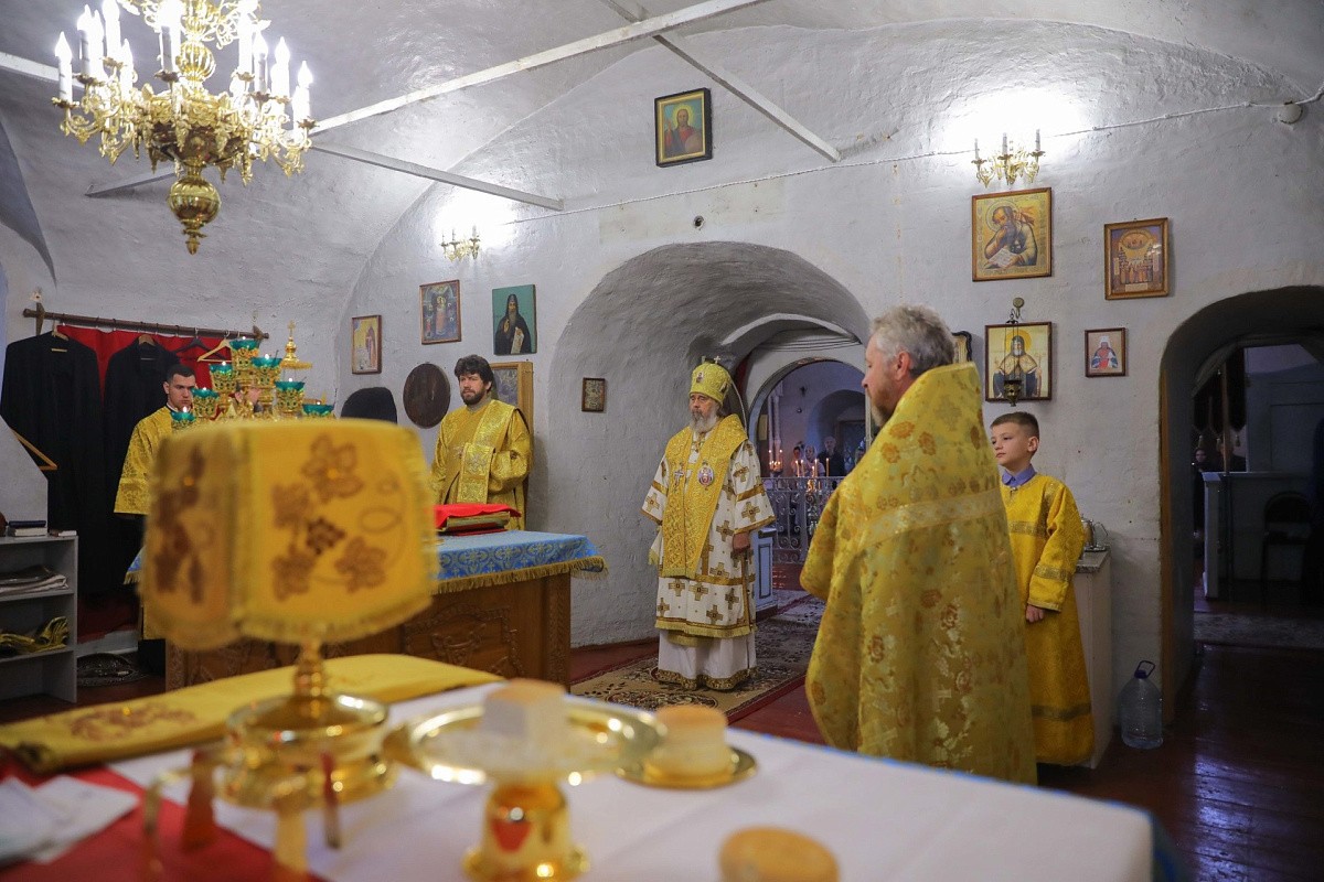 Его Высокопреосвященству сослужили благочинный монастырей Тульской епархии игумен Агафангел (Болдин) и иерей Аркадий Елькин.